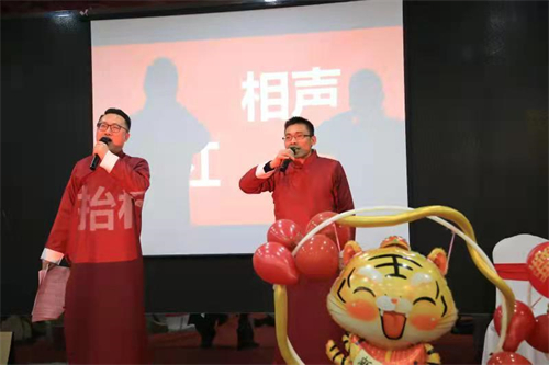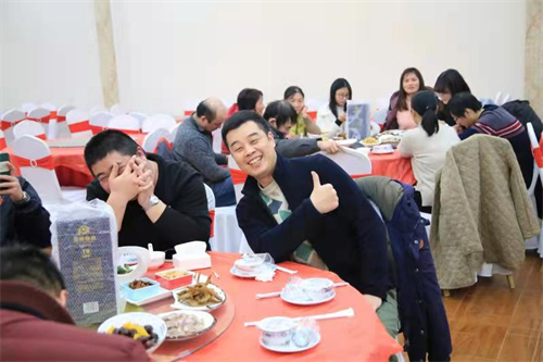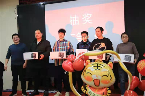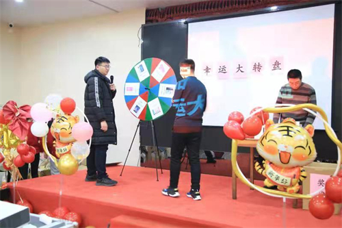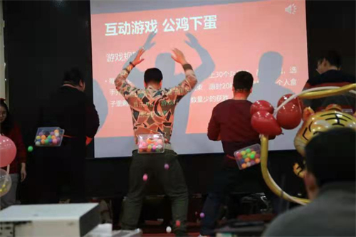整個晚會經過富松總務部的精心策劃,整個年會高潮迭起,各個部門都表演了豐富多彩的文藝演出,有舞蹈、小品、唱歌還有相聲,文藝演出中間還穿插了好幾輪獎品抽獎和游戲互動環節,有你比我猜、公雞下蛋、傳氣球和尋寶大作戰,尤其是最后一個游戲尋寶大作戰,全體員工積極參與,整個氣氛熱烈歡騰,嗨翻全場,員工們在酒桌上肆意開著玩笑,拎著酒瓶拿著酒杯串桌進行車輪戰的比比皆是,大家吃得痛快,喝的高興,游戲玩的興奮,拆獎品拆的手軟。